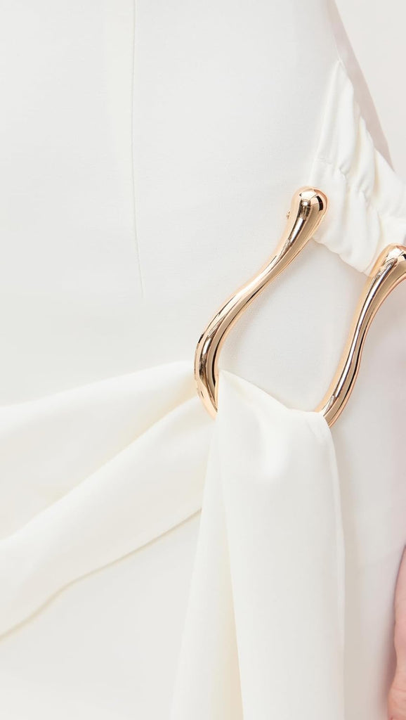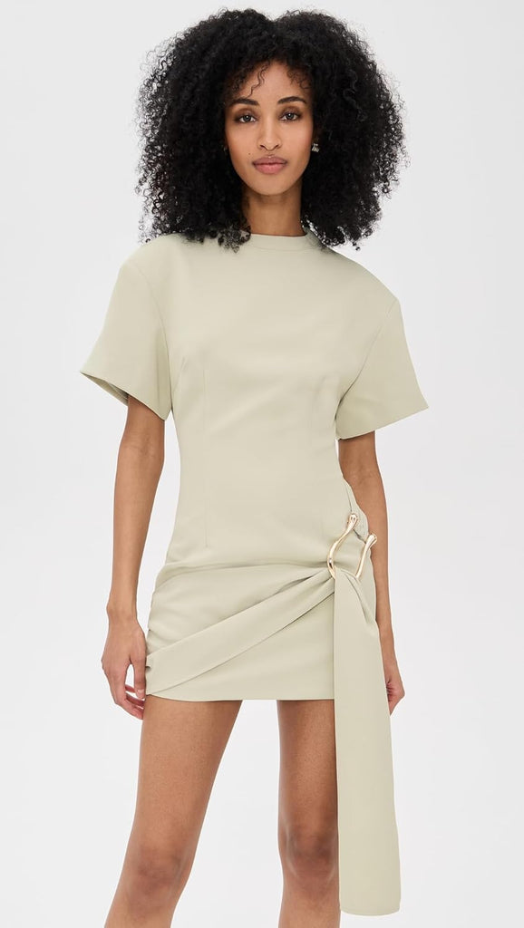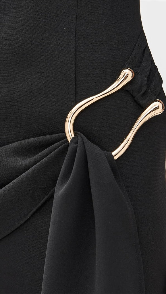 A soft draped detail at the waist is beautifully accented with polished gold-tone hardware π«, adding a refined, feminine touch while subtly defining the silhouette.